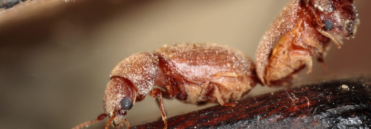 Pas uitgekomen larven zwerven zeer actief rond, net zo lang totdat ze geschikt voedsel hebben gevonden. Door hun geringe afmetingen kunnen de larven gemakkelijk door de kleinste openingen dringen. Ze vertonen een grote drang om zich te verplaatsen en kunnen tot wel 10 dagen zonder voedsel.