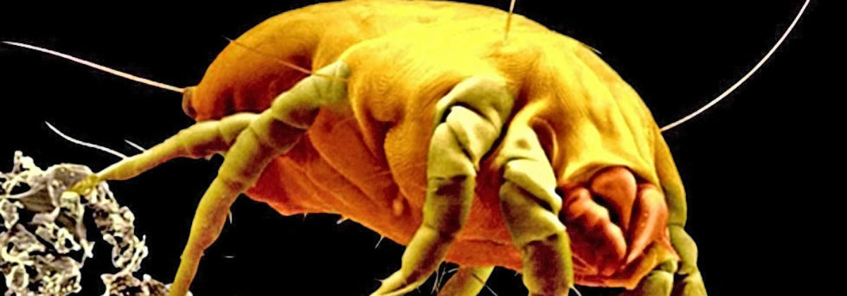 De huisstofmijt is een erg klein (0,3 mm) spinachtig beestje, veel kleiner dan een vlo en voor het blote oog niet zichtbaar. Huisstofmijten voeden zich voornamelijk met menselijke huidschilfers, maar ook pollen, bacteriën, schimmels en dierenharen staan op het menu. Voedsel is in onze huizen daarmee ruimschoots aanwezig. De ontwikkeling van het aantal huisstofmijten volgt een seizoensgebonden patroon. Het aantal diertjes is in de winter het laagst (door stoken is het het droogst in huis) en bereikt een maximum op het einde van de zomer en in de herfst.