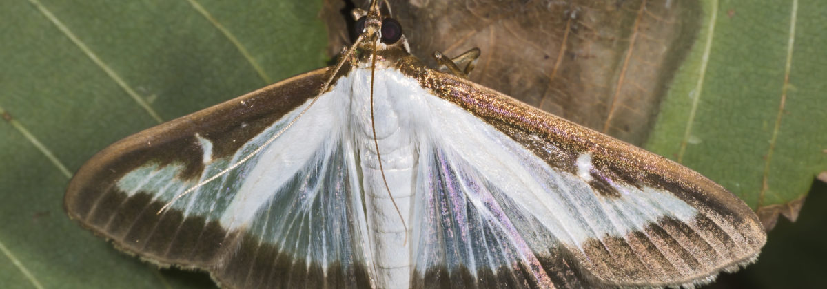 De jonge rupsen doen zich tegoed aan delen van het bladmoes. Volwassen rupsen voeden zich met het gehele blad en kunnen in korte tijd een plant volledig ontbladeren. Op de aangetaste planten blijft een spinsel achter. Doordat de soort als rups overwintert, zijn er gedurende het hele groeiseizoen rupsen aanwezig waardoor de buxusplanten niet de kans krijgen van vraatschade te herstellen. De plant kan hierdoor afsterven.