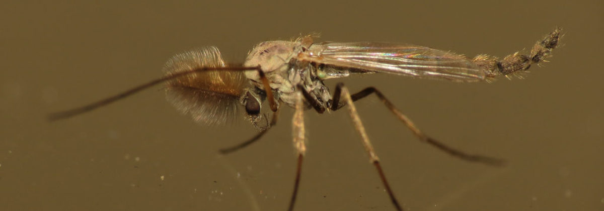 Een dansmuggen larve, ook wel bloedworm of rode muggenlarve genoemd.