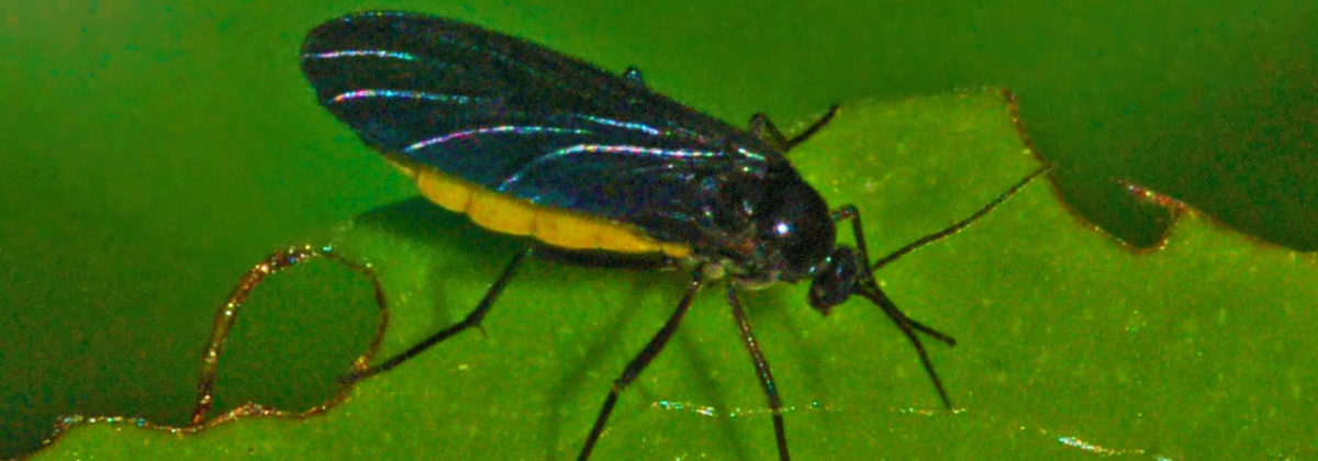 De volwassen rouwmuggen kunnen worden weggevangen met (gele) plakstrips, die u plaatst bij de plant.
