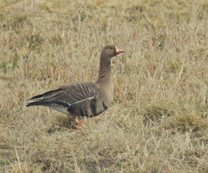 Lijkt sterk op de grauwe gans, maar heeft een typische witte vlek rond de snavel en is een slag kleiner (64 tot 78 cm). De gans is bruingrijs van kleur, de snavel is roze.